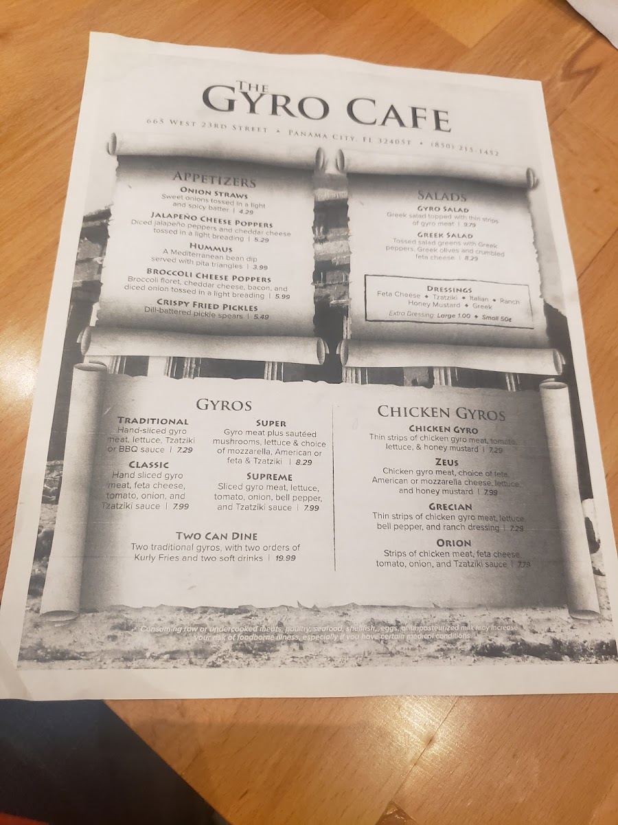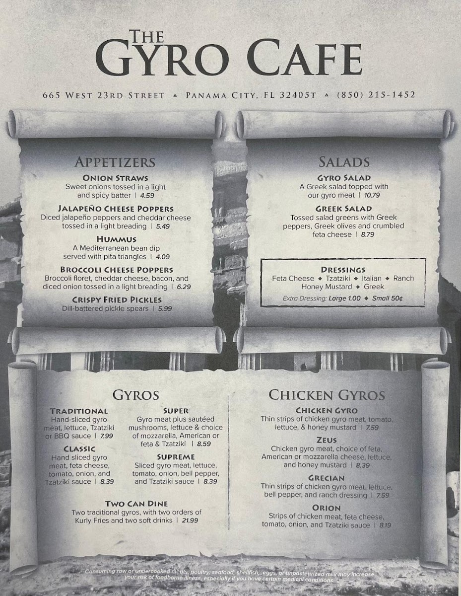 Welcome to Gyro Cafe, a delightful eatery nestled in Panama City, FL, where authentic Mediterranean flavors come alive. At Gyro Cafe, you can dive into a menu that highlights their specialty—gyros, featuring tender, thinly sliced chicken combined with fresh ingredients and house-made sauces.